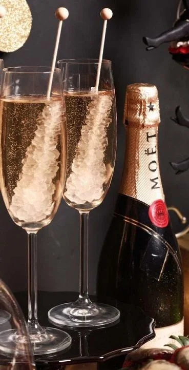 Add rock candy to a simple glass of champagne for the ultimate winter effect.