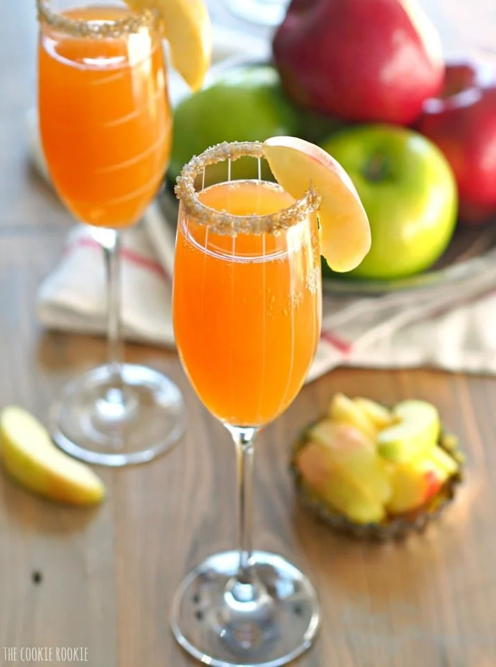 - Pour each champagne glass ½-3/4 full with apple cider.